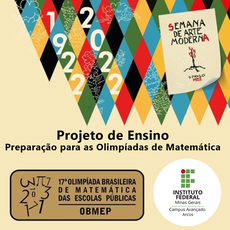 O projeto de ensino " Preparação para as Olimpíadas de Matemática" sob a coordenação da Profa. Joice Stella de Melo Rocha e do Prof. Flávio Fernandes Barbosa Silva está selecionando 2 (dois) bolsistas pelo período de abril a dezembro de 2022.