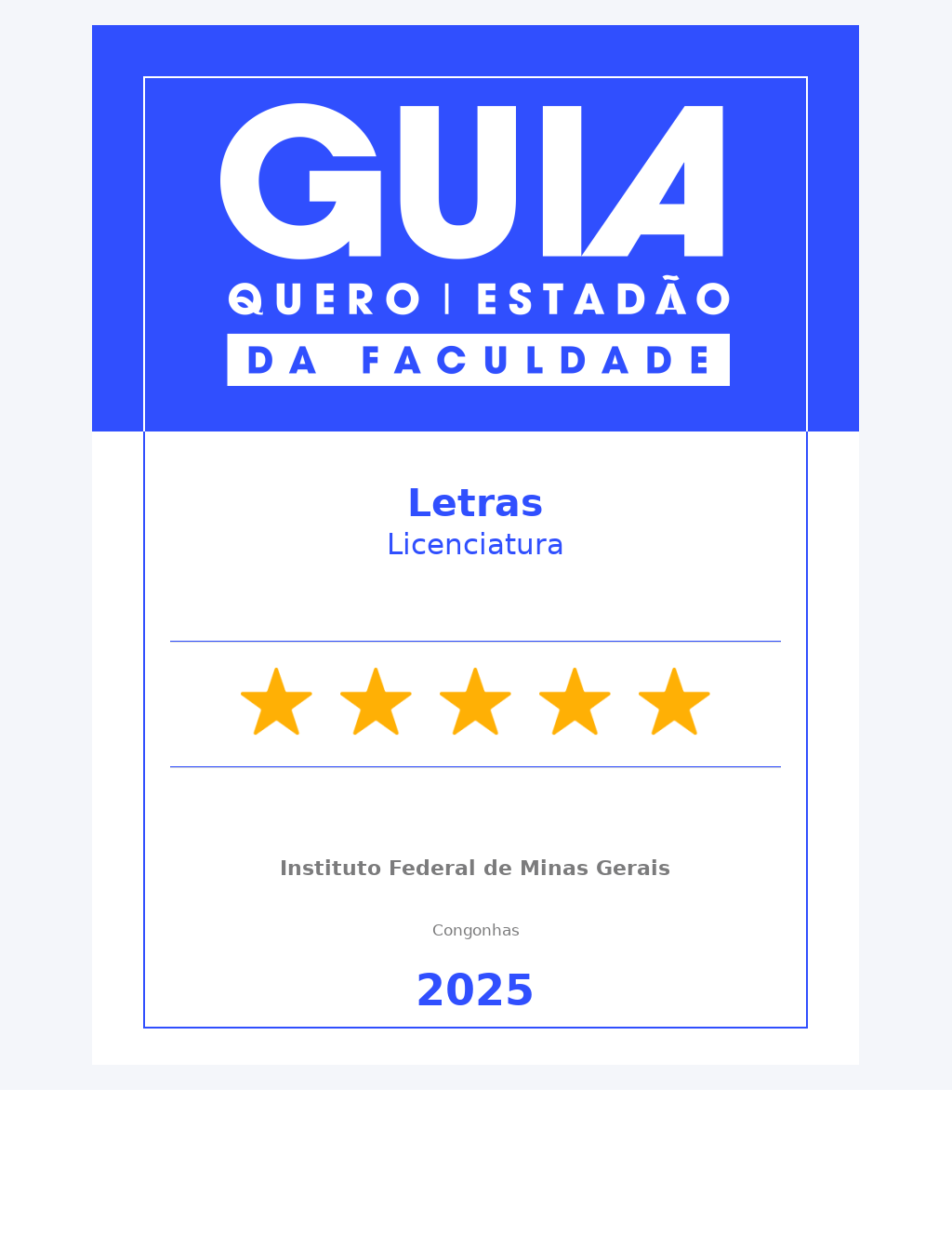 Curso de Letras do IFMG Congonhas recebe nota máxima no Guia da Faculdade 2025