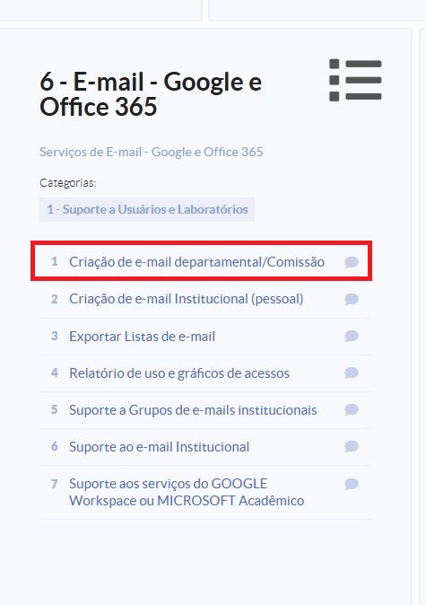 Solicitação de e-mail institucional (Comissão / departamento e unidade SEI)
