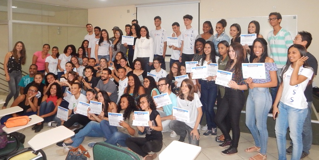 No encerramento das atividades, os alunos receberam o resultado do último simulado, um certificado de conclusão de curso emitido pelo SERTEP e fizeram uma confraternização com a equipe do projeto.